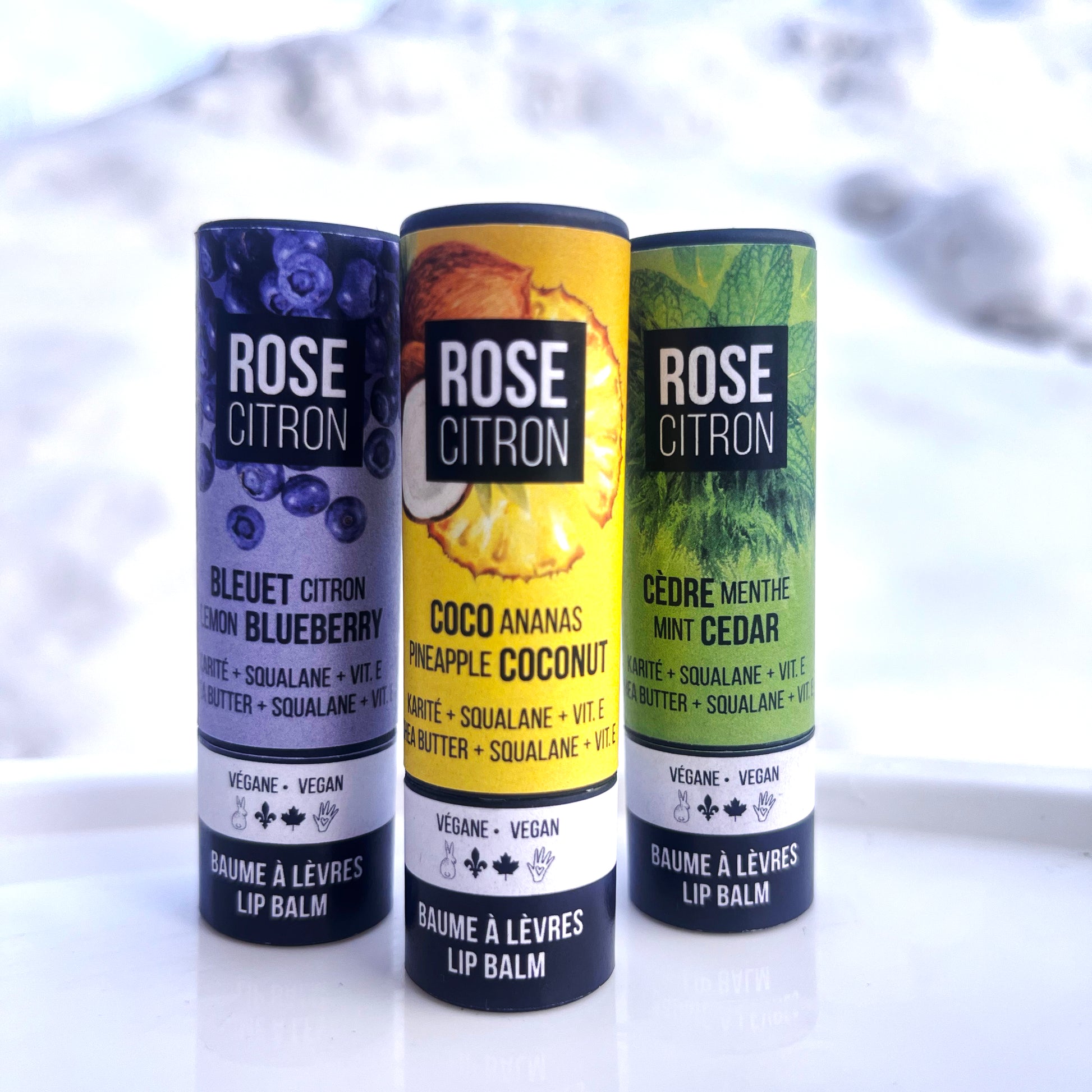 Baumes à lèvres avec vitamine E et squalane - emballage en carton